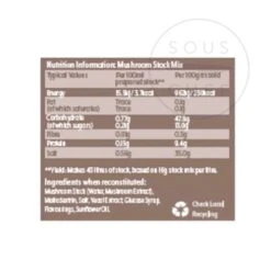 Essential Cuisine mushroom stock mix gives your soups, gravies and broths a rich earthiness. Simply add 16g of dry stock mix to 1 litre of boiling water for an umami vegetable stock to add to your sauces and pies.