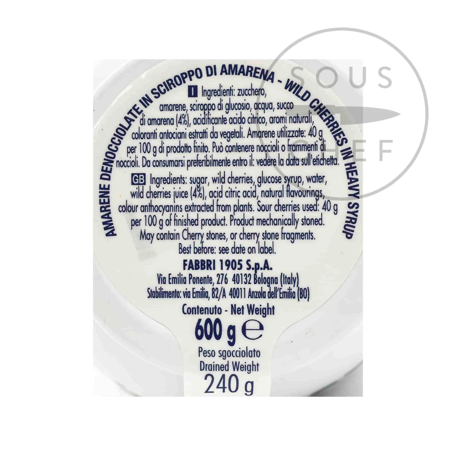 Fabbri Amarena cherries in syrup are world famous demi-glacé cherries in a decorative opaline jar. The Amarena cherries are soft and juicy, with a pleasing sourness that balances the sweet syrup.