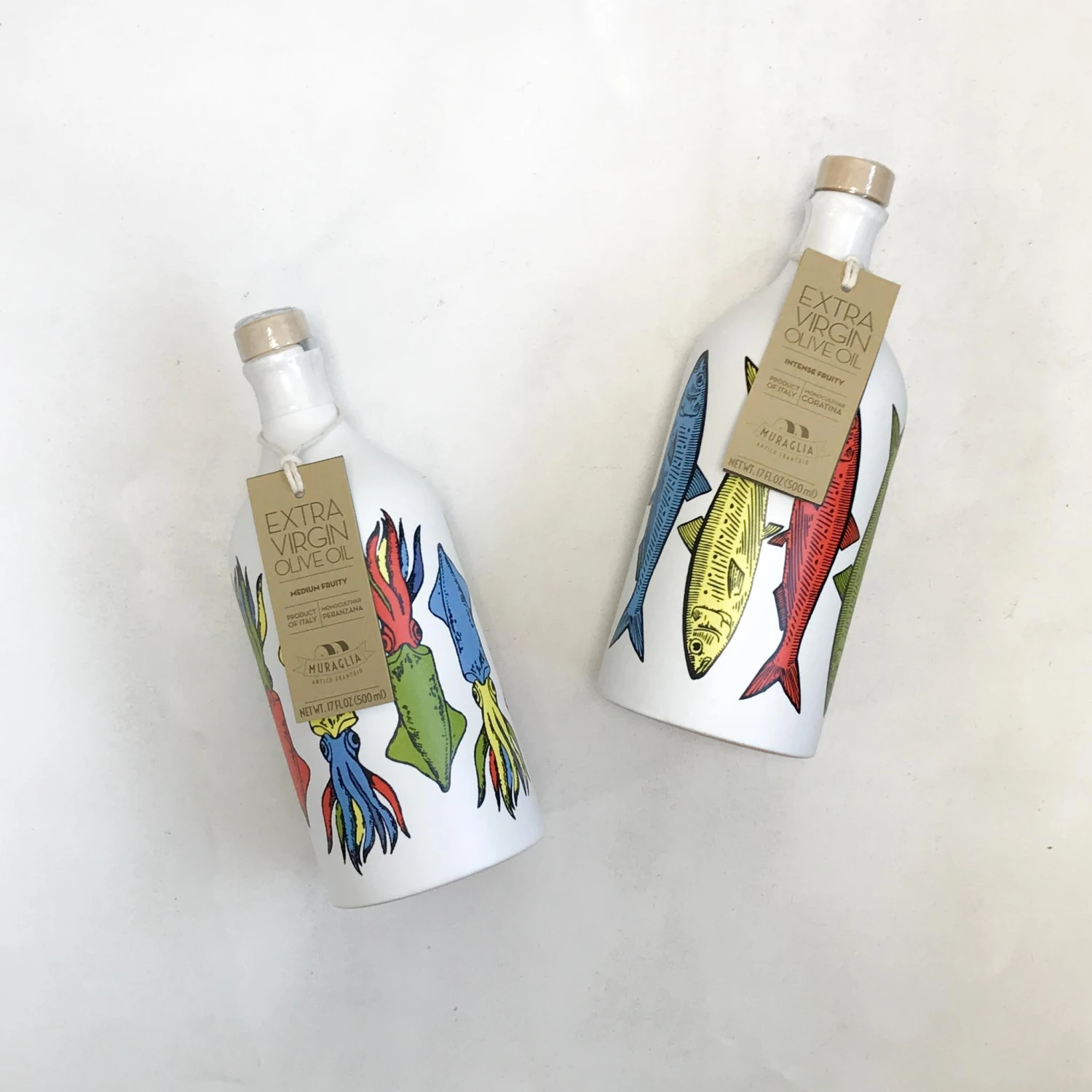 Frantoio Muraglia extra virgin olive in a sardine terracotta bottle is not only a fine Italian olive oil, but is also a piece of art for your kitchen.