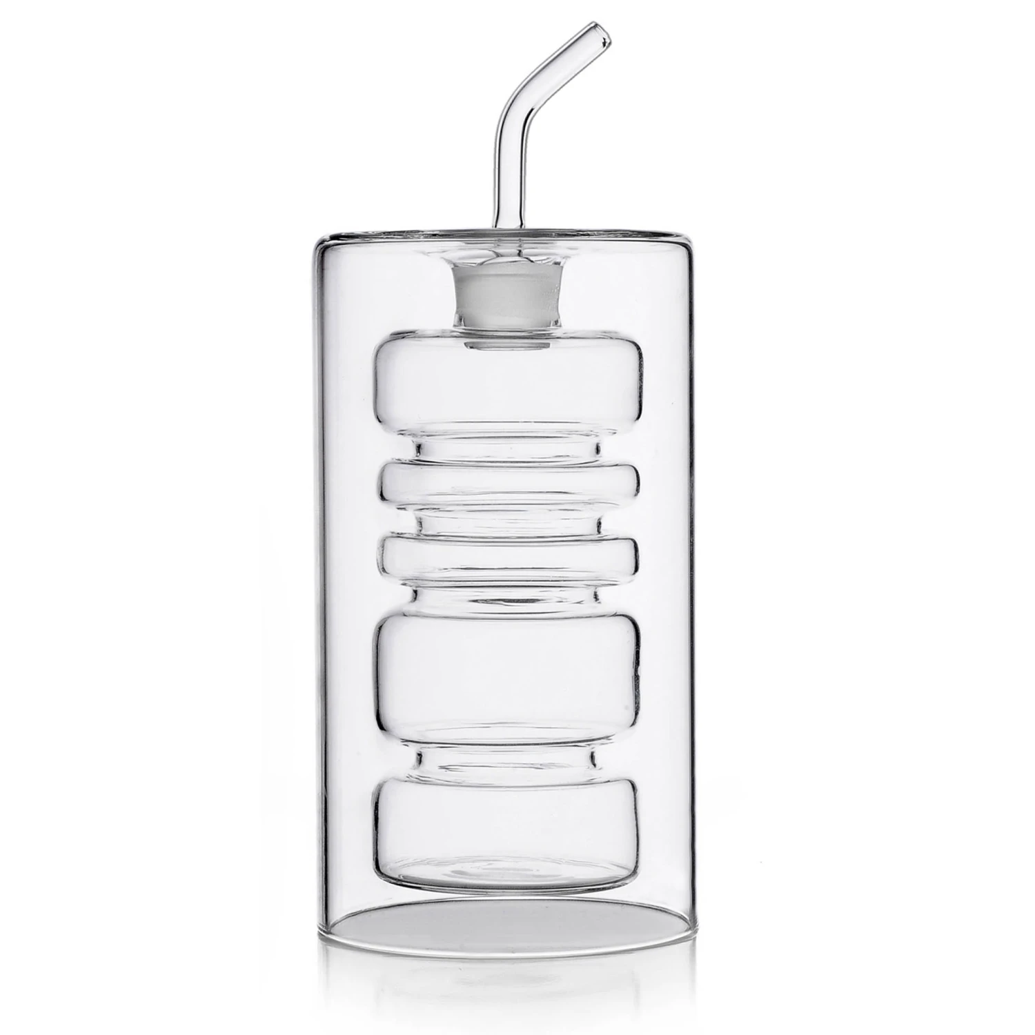 Ichendorf Milano’s large olive oil bottle elevates the way you pour oil. Crafted from 100% glass and made in Milan, this large bottle features a ring pattern, which, when filled with olive oil, creates a stunning design. With a narrow spout, this bottle is easy to pour from and is beautiful to have on show at all times.