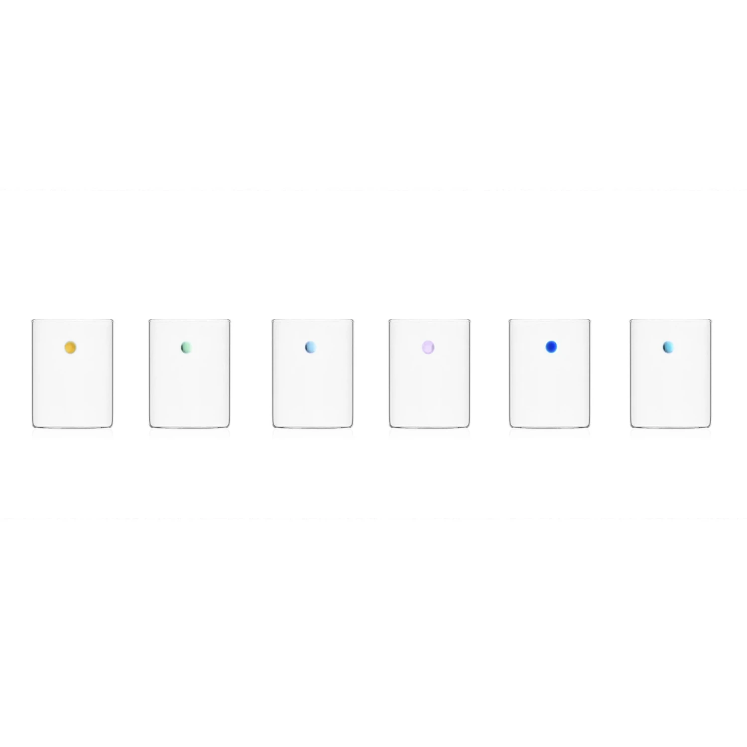 This set of 6 of Ichendorf Milano is a stunning glassware collection to serve water or wine in style. Each cylinder-shaped tumbler has a different coloured glass bead detail. Each of the 6 glasses features a unique iridescent colour, including amber, lilac and blue shades. These simple tumblers hold drinks in elegant style.