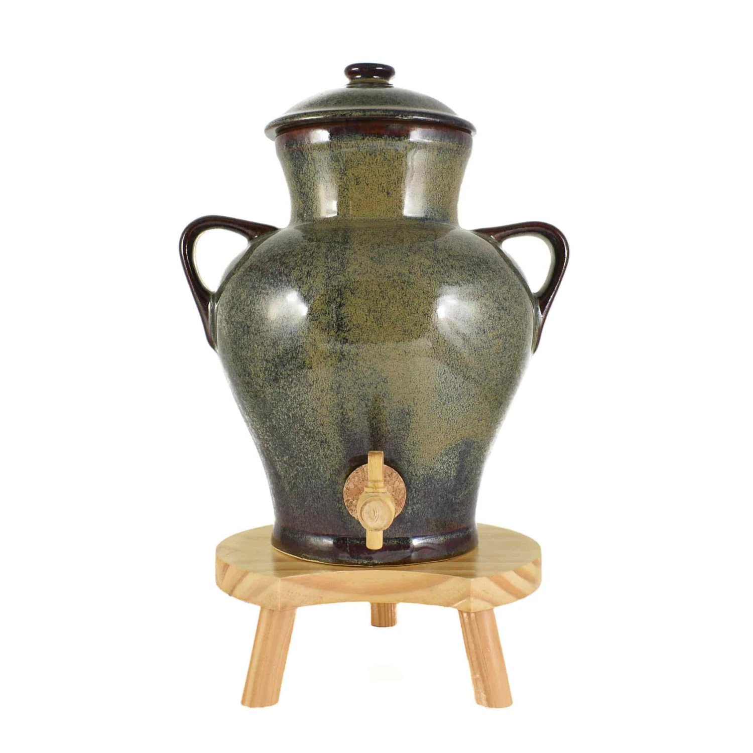 The hand-glazed traditional ‘amphora’ style vinaigrier echoes those that have been used all around the Mediterranean for hundreds of years. The curved section in the wooden stand makes it easy to fit a bottle, jar or cup under the tap. The two handles on either side make it easy to pick up and store. It has a wooden tap to pour as much vinegar out as you need!