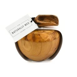 Olive Wood Salt Pot And Scoop Set