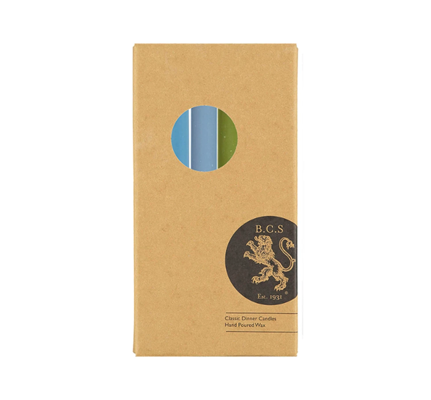 These colour block dinner candles in six different shades add an elegant touch to your dining table. The candles are hand-poured by a team of artisans in the British Colour Standard shades of blue and green. The colourful candles make a lovely house-warming gift or a thoughtful present to take along to your next dinner party.