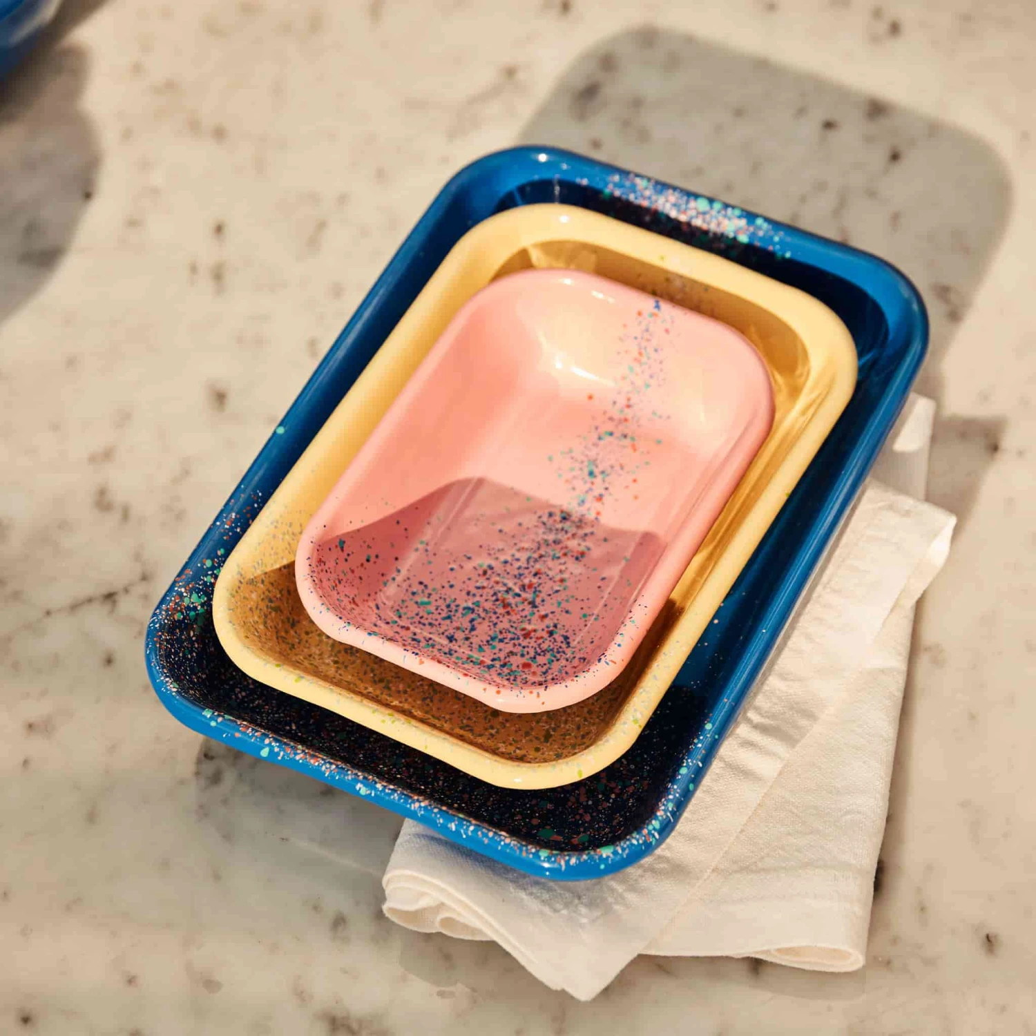 Mix and match this dish with other pieces from our enamelware collection for a vibrant table spread.