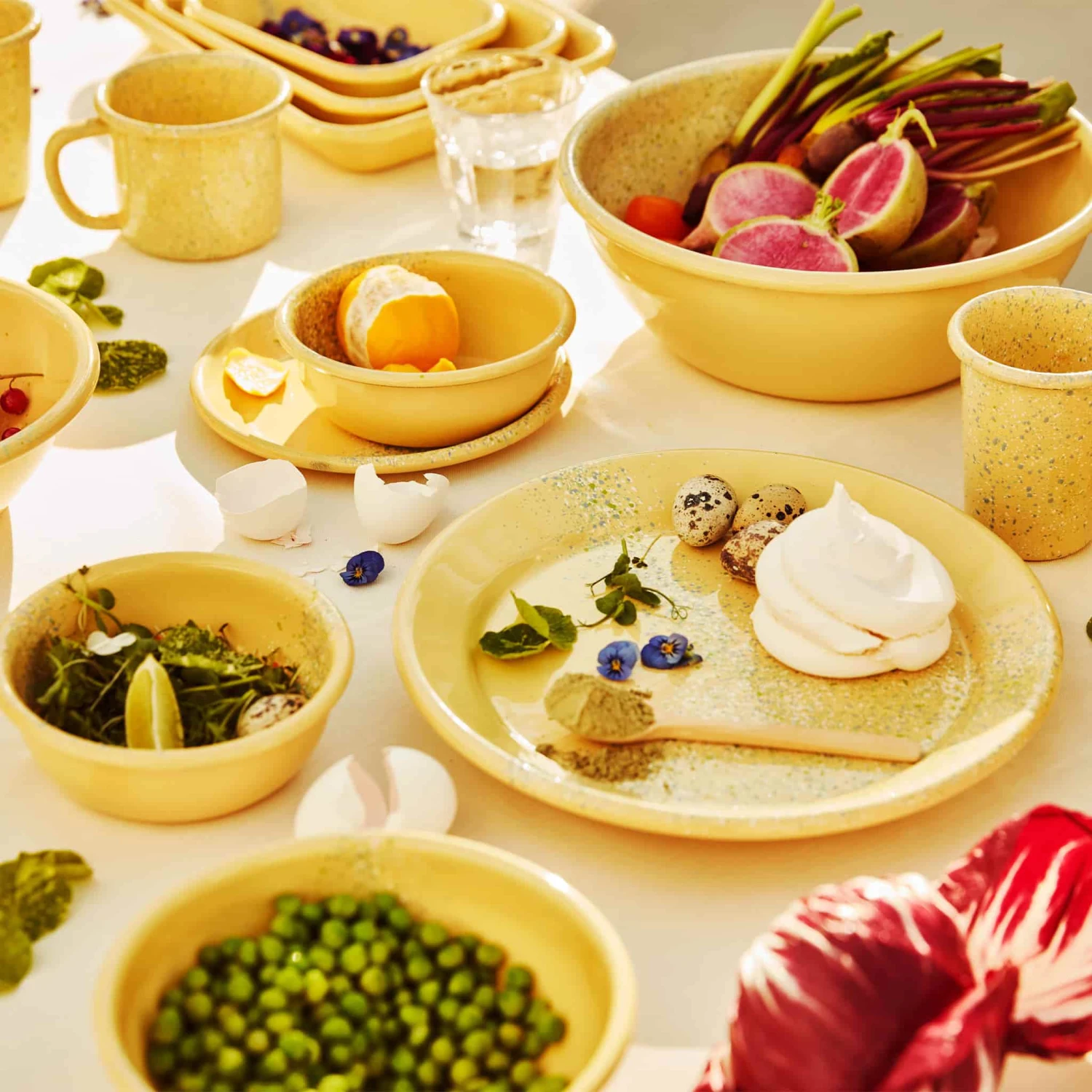 This durable and resilient enamelware can be used both outside and indoors, and the colours will stay bright and vibrant (even in the dishwasher), as they’ve been heated to 800°C during production.