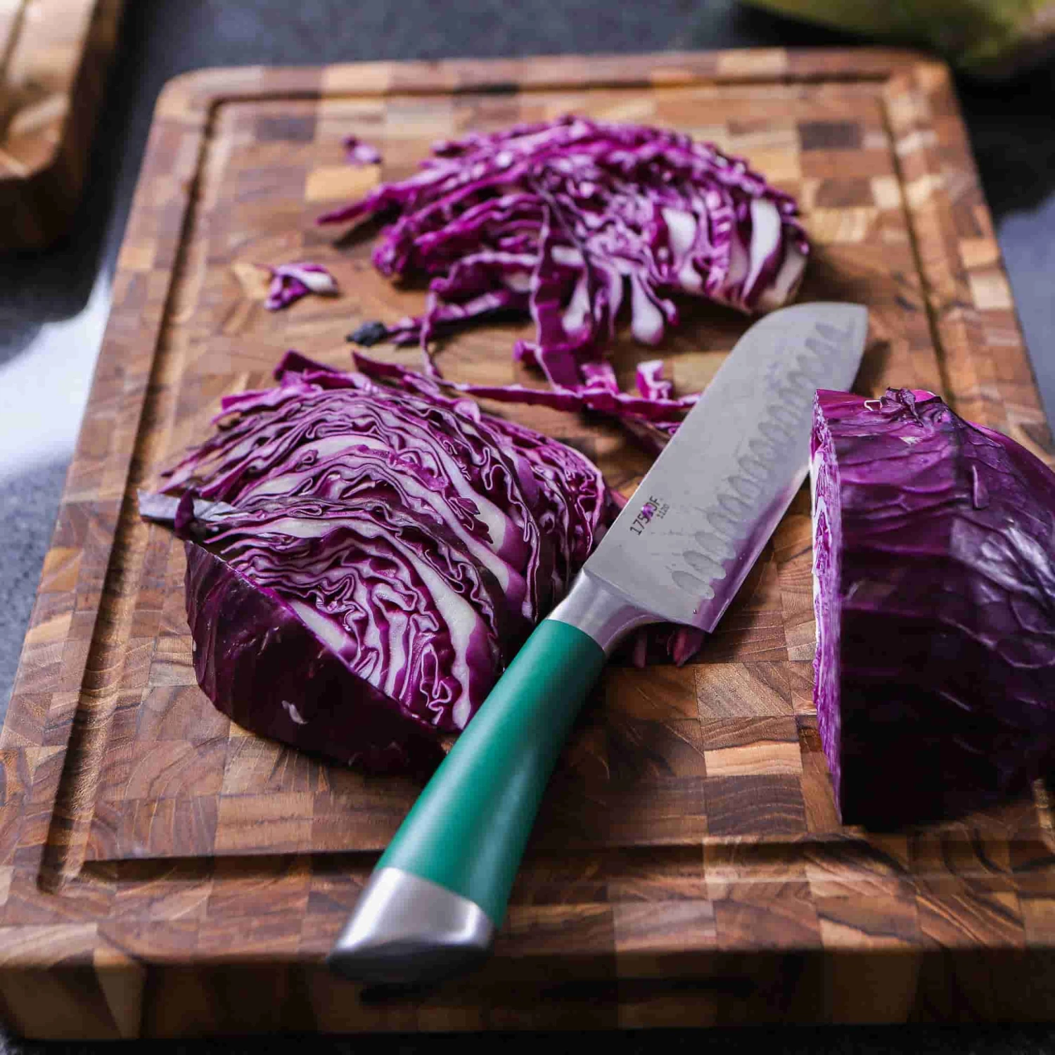 Teakhaus uses 100% sustainable wood from FSC® certified forests so that all of their products are truly eco-friendly. Teakwood’s natural beauty combined with its high oil content and moisture resistance make it an ideal material for a cutting board. It is knife-friendly, easy to maintain and long-lasting.